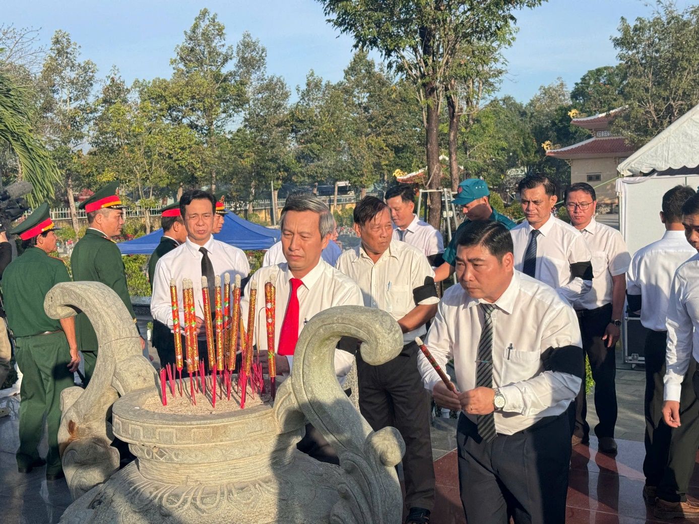 Các đoàn đại biểu đã dâng hương, dâng hoa tại Đài tưởng niệm các anh hùng liệt sĩ