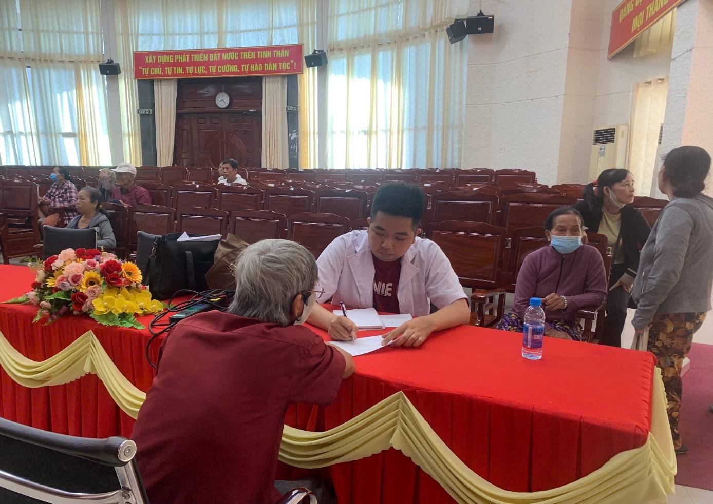 Đội ngũ y, bác sĩ chuyên khoa tư vấn và khám cho người dân trên địa bàn xã